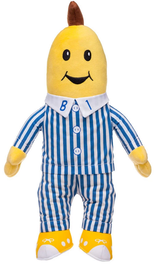 B1 talking plush toy. B2 sold separately. Squeeze my tummy to hear me talk. Features 5 classic Bananas in Pyjamas phrases. We’ll play with everyone! Jamamara! It’s making music time! It’s playing with teddies time! It’s sleep time! Official licenced product of the Australian Broadcasting Corporation.