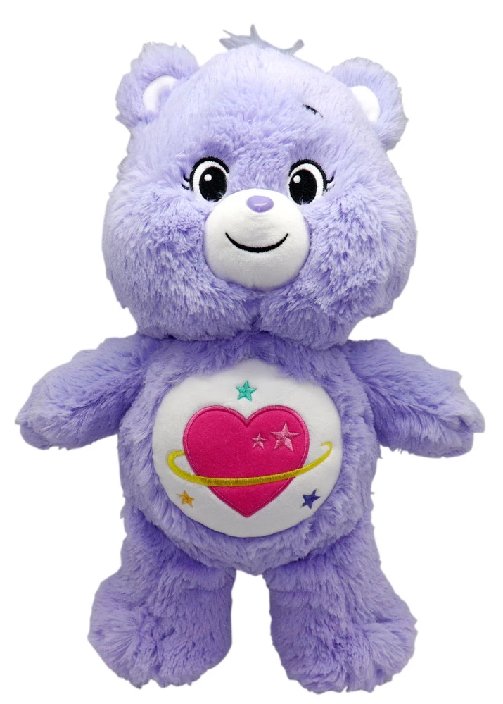 Unlock the magic with these super soft and cuddly Care Bears plushes. Perfect for imaginative play in the care a lot land. They are sure to turn your frown upside down! These plush cuties are approximately 35cm tall with ultra soft fur, cuddly stuffing, and embroidered detailing of their iconic belly badge and heart shaped paw pads