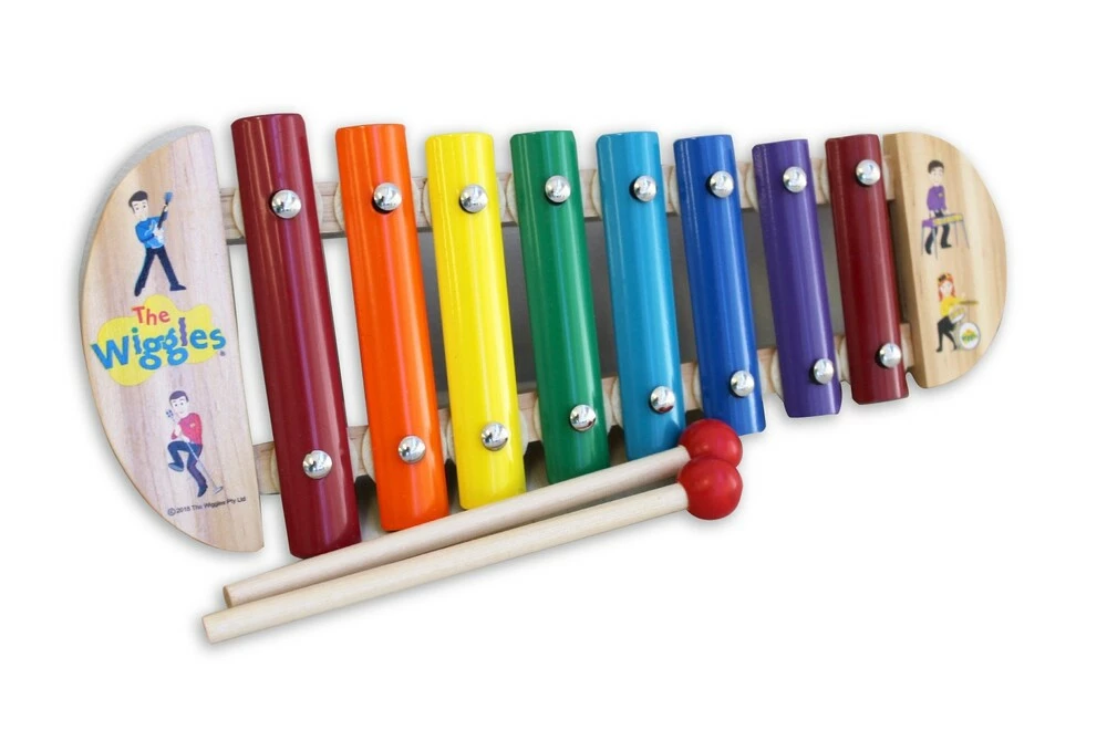 Part of the range The Wiggles wooden musical instrument range, this xylophone has tuned metal keys for an authentic sound. An ideal introduction to music scales and featuring your favourite Wiggles characters.